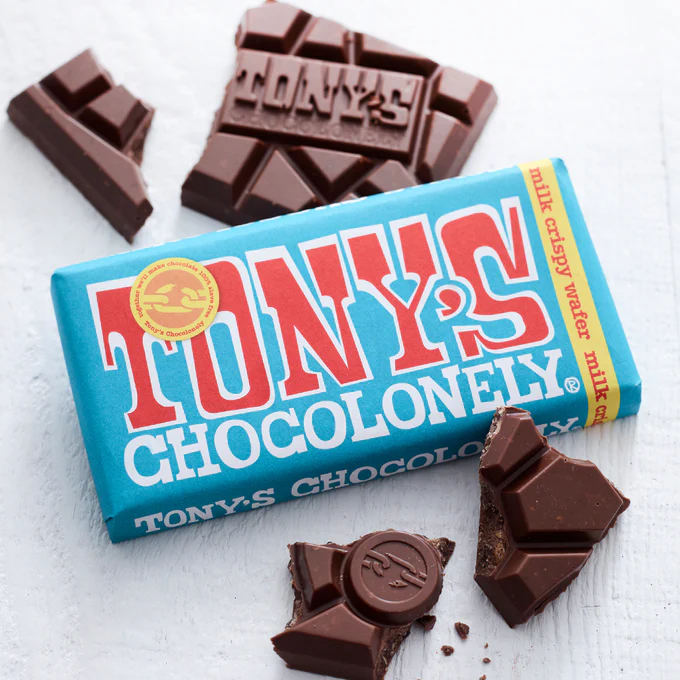 This trend is especially popular in snack foods, beverages, and cosmetics, where brands want to convey energy and fun. Companies like Tony’s Chocolonely use bold, colourful fonts to reinforce their brand identity and message.